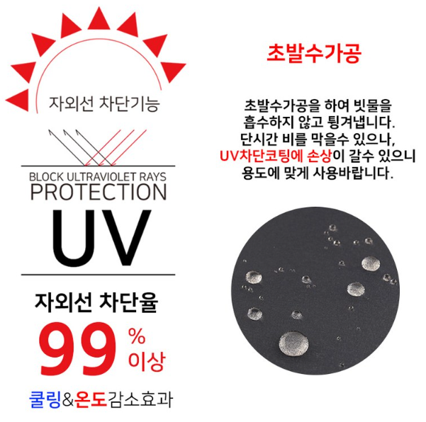 | UV 차단 | 자외선 최대 99% 차단, UV코팅 원단 사용 |