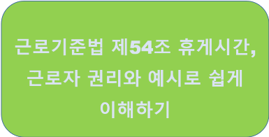 근로기준법 제54조는 휴게시간에 대한 내용을 규정하고 있으며, 근로자가 일하는 중 일정 시간 동안 휴식을 취할 수 있도록 보장하는 법적 권리입니다. 이 법은 근로자가 과도하게 일하지 않도록 보호하고, 직장에서의 건강과 복지를 중요하게 여깁니다. 오늘은 근로기준법 제54조에 대해 예시를 들어 이해하기 쉽게 설명해 드리겠습니다.