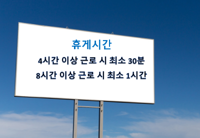 - 4시간 이상 근로 시 최소 30분의 휴게시간을 보장해야 하며,