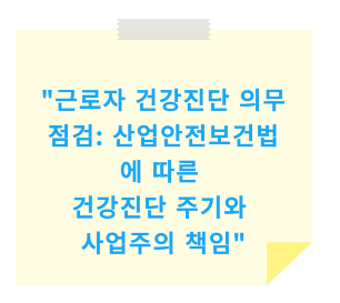 사업주로서 근로자들의 건강을 관리하고, 건강진단을 적시에 실시하는 것은 기업의 사회적 책임이자 법적 의무입니다. 건강진단을 통해 근로자들의 건강을 지키고, 과태료를 방지하는 방법에 대해 철저히 점검하세요!
