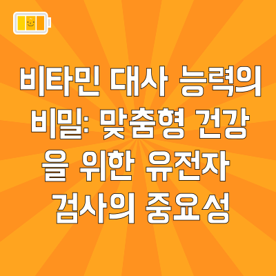 따라서, 비타민 대사 능력은 건강과 영양 상태를 평가하는 중요한 요소 중 하나입니다. 개인의 대사 특성을 파악하여, 적절한 비타민 섭취 방법을 찾는 것이 중요할 수 있습니다.