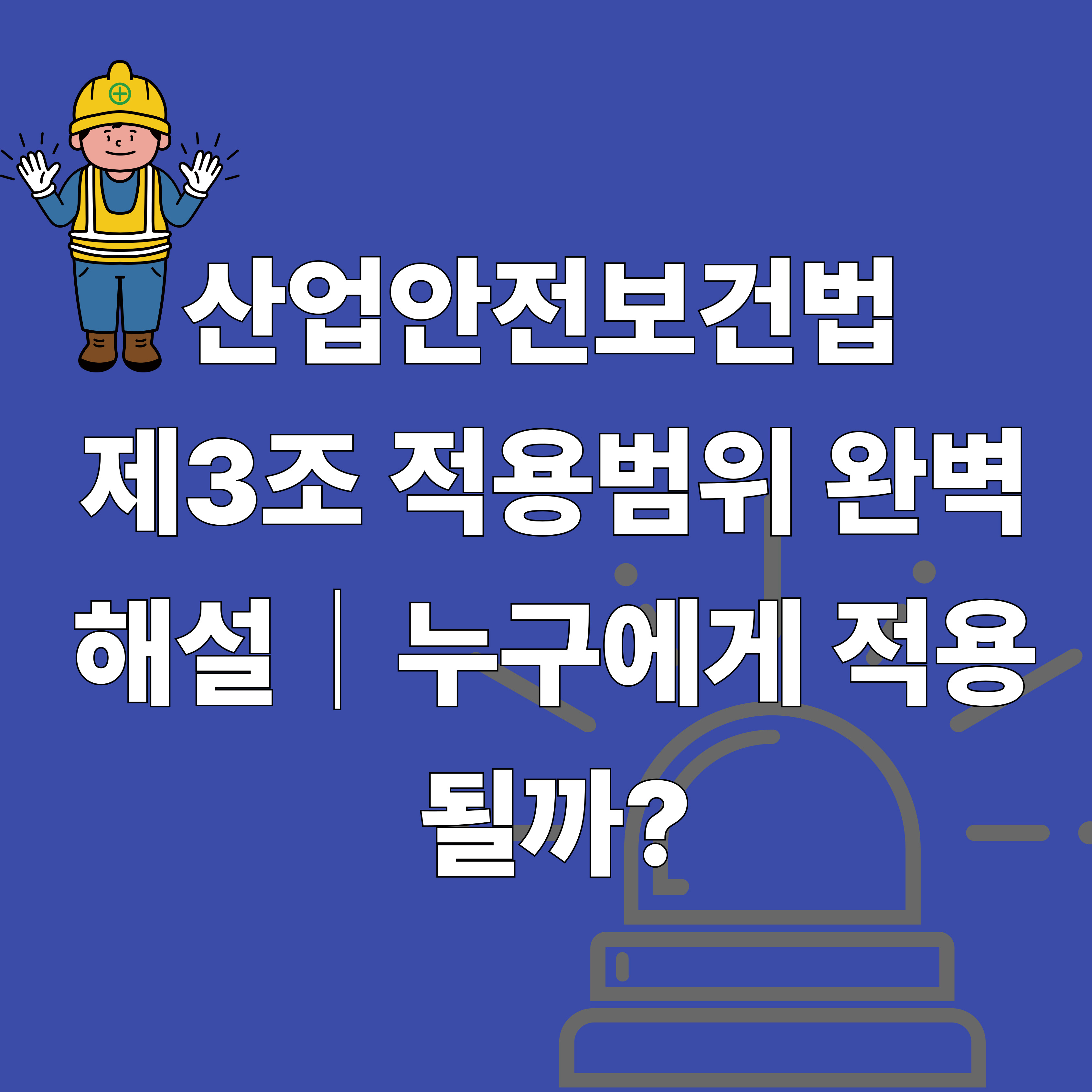 안전한 일터를 만들기 위해 제정된 산업안전보건법. 그중 제3조는 ‘이 법이 누구에게 적용되는가?’에 대한 기준을 명확히 제시합니다. 단순히 ‘사업장에 적용된다’고만 알고 있다면 놓치는 부분이 많습니다.