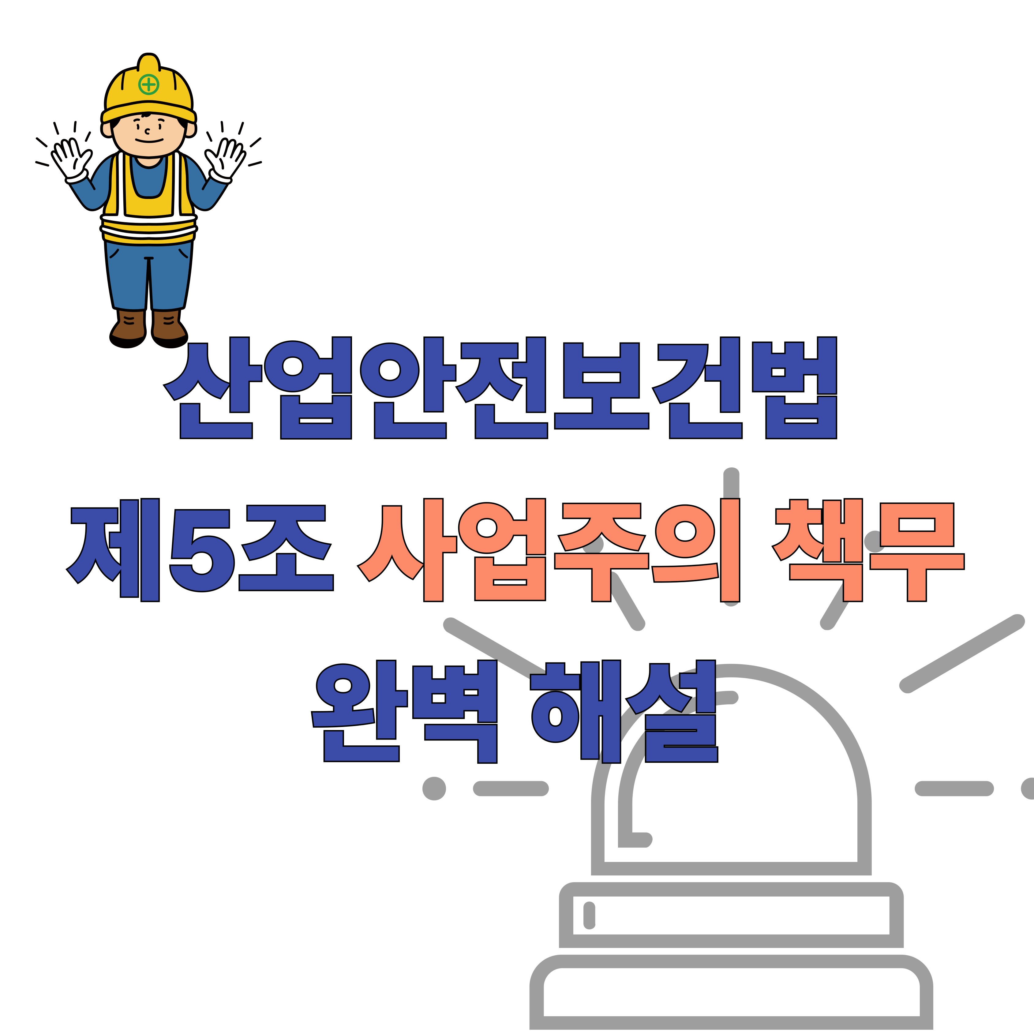 산업안전보건법은 근로자의 생명과 건강을 보호하기 위한 매우 중요한 법입니다. 그중에서도 제5조 ‘사업주의 책무’는 사업장에서 안전보건을 확보하기 위한 가장 기본적인 의무를 규정하고 있습니다. 이 글에서는 산업안전보건법 제5조의 핵심 내용을 알기 쉽게 정리하고, 사업주가 실제로 준수해야 할 사항들을 예시와 함께 안내드립니다.