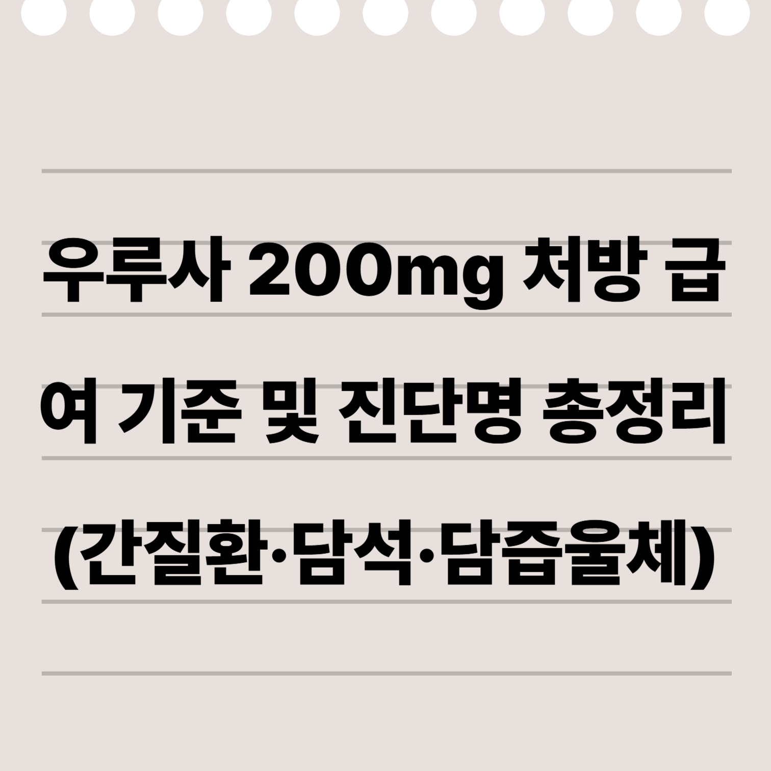 간 기능 개선제로 잘 알려진 우루사(UDCA, Ursodeoxycholic acid)는 간질환 치료부터 담석 용해까지 다양한 분야에서 처방됩니다. 하지만 모든 경우에 건강보험이 적용되는 것은 아니며, 정확한 급여 기준과 진단명을 알아야 처방 시 보험 혜택을 받을 수 있습니다. 오늘은 우루사 200mg 처방의 급여 기준, 적용 가능한 진단명(상병코드), 비급여 사례까지 상세히 정리해드립니다.