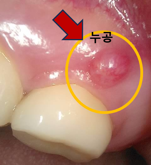 치아 뿌리 끝에 염증이 생겨 고름이 차고, 그 압력으로 잇몸에 작은 구멍이 뚫려