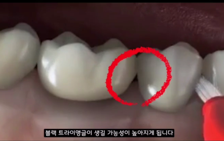 치아 사이가 넓거나 교정 후 틈이 생기면서 블랙트라이앵글이 생기기도 합니다.