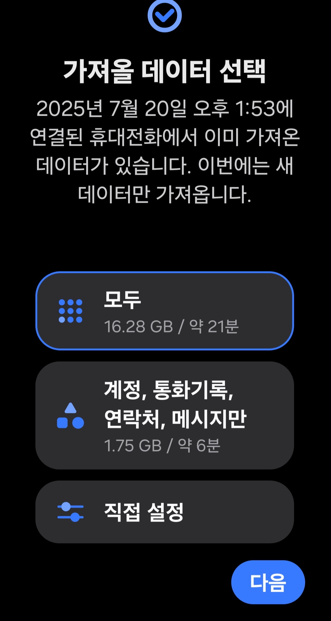 - 갤럭시 사용자는 스마트 스위치로 전체 이전
