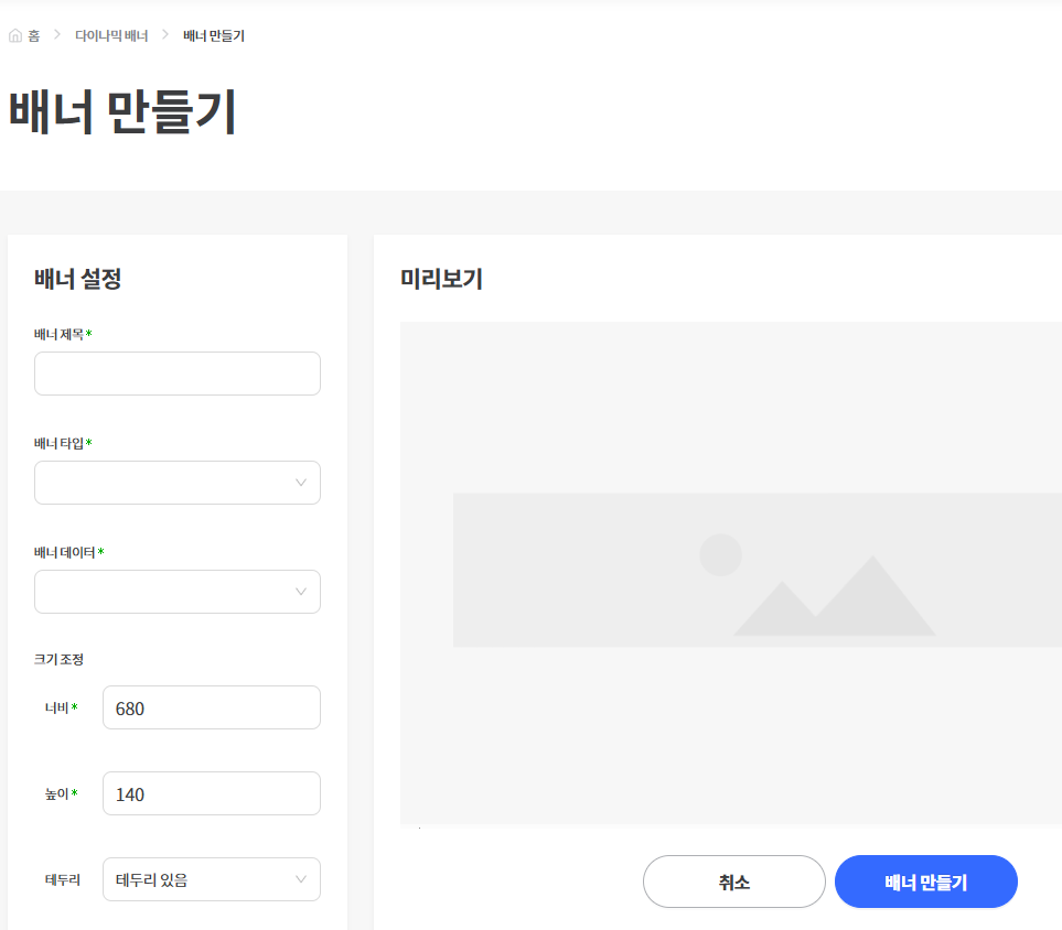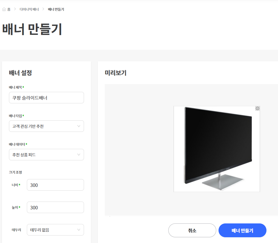 - 왼쪽 메뉴에서 [광고 생성] → [배너] 클릭