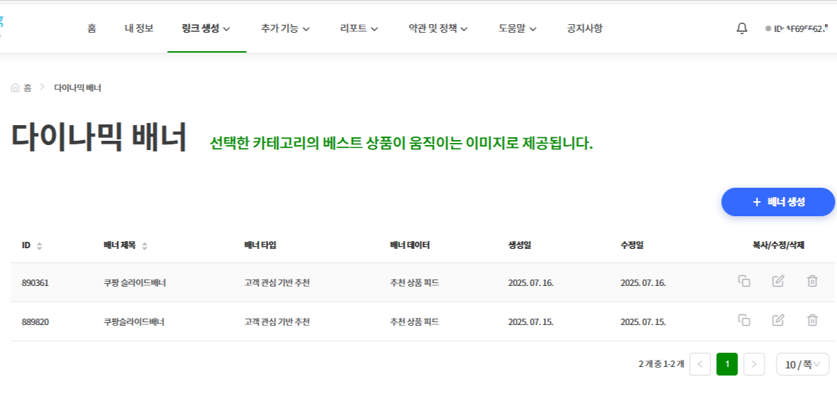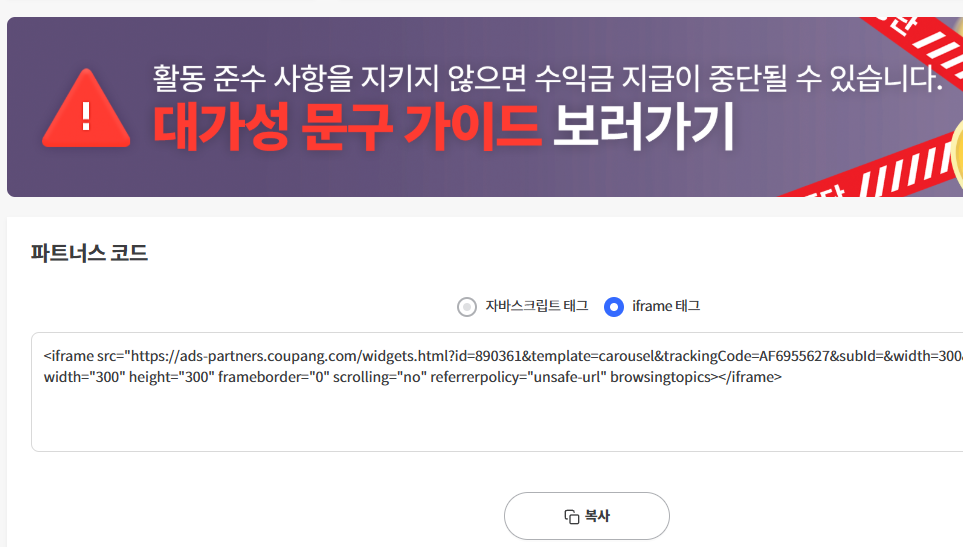1. 쿠팡 파트너스에서 배너 코드 만들기