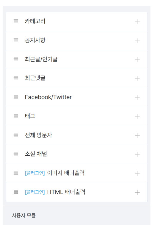 - '기본 모듈'에서 [HTML 배너 출력] 선택 후 ‘+’