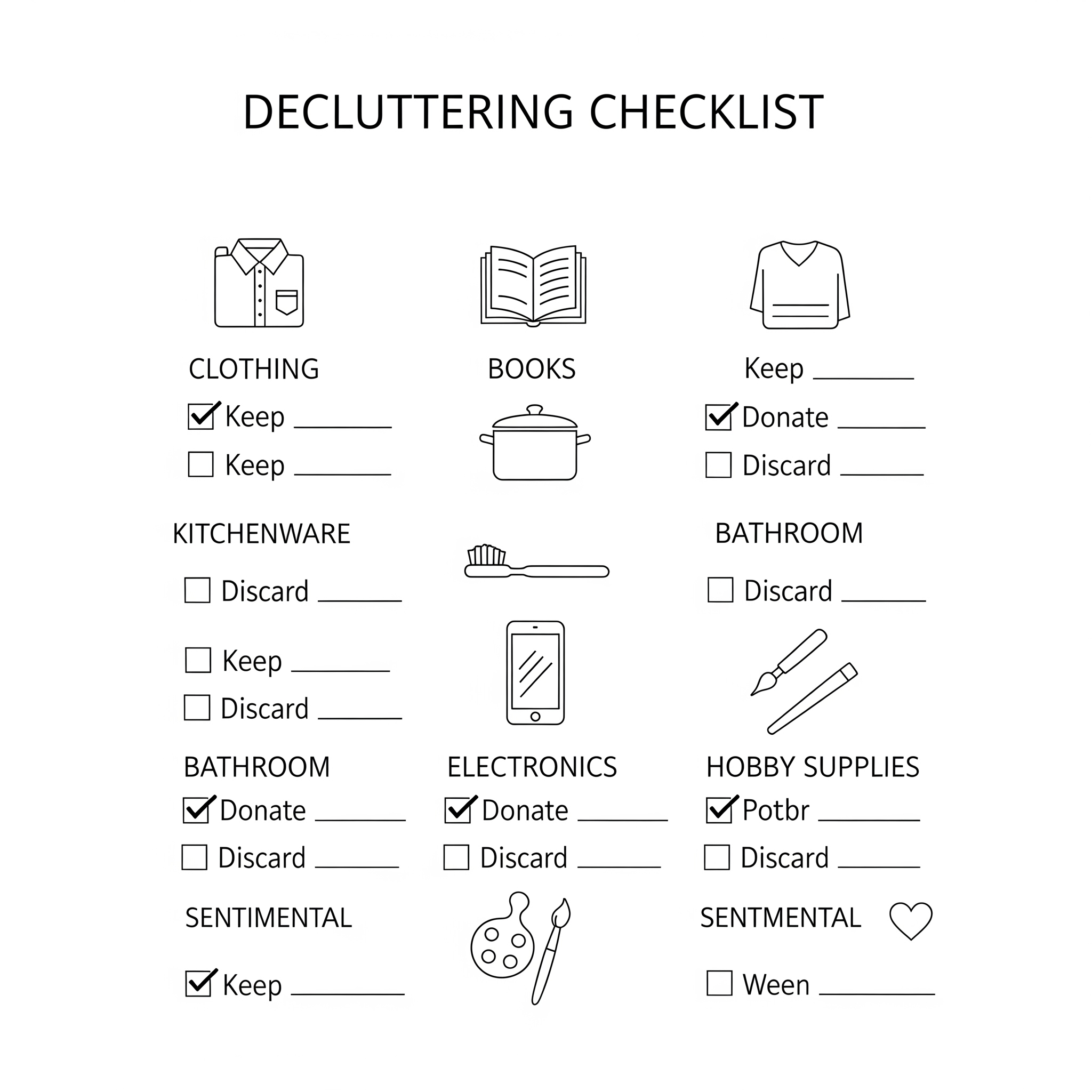 작은 공간부터 하나씩 시작하세요. 다음과 같은 체크리스트를 참고해 정리를 시작해보세요: