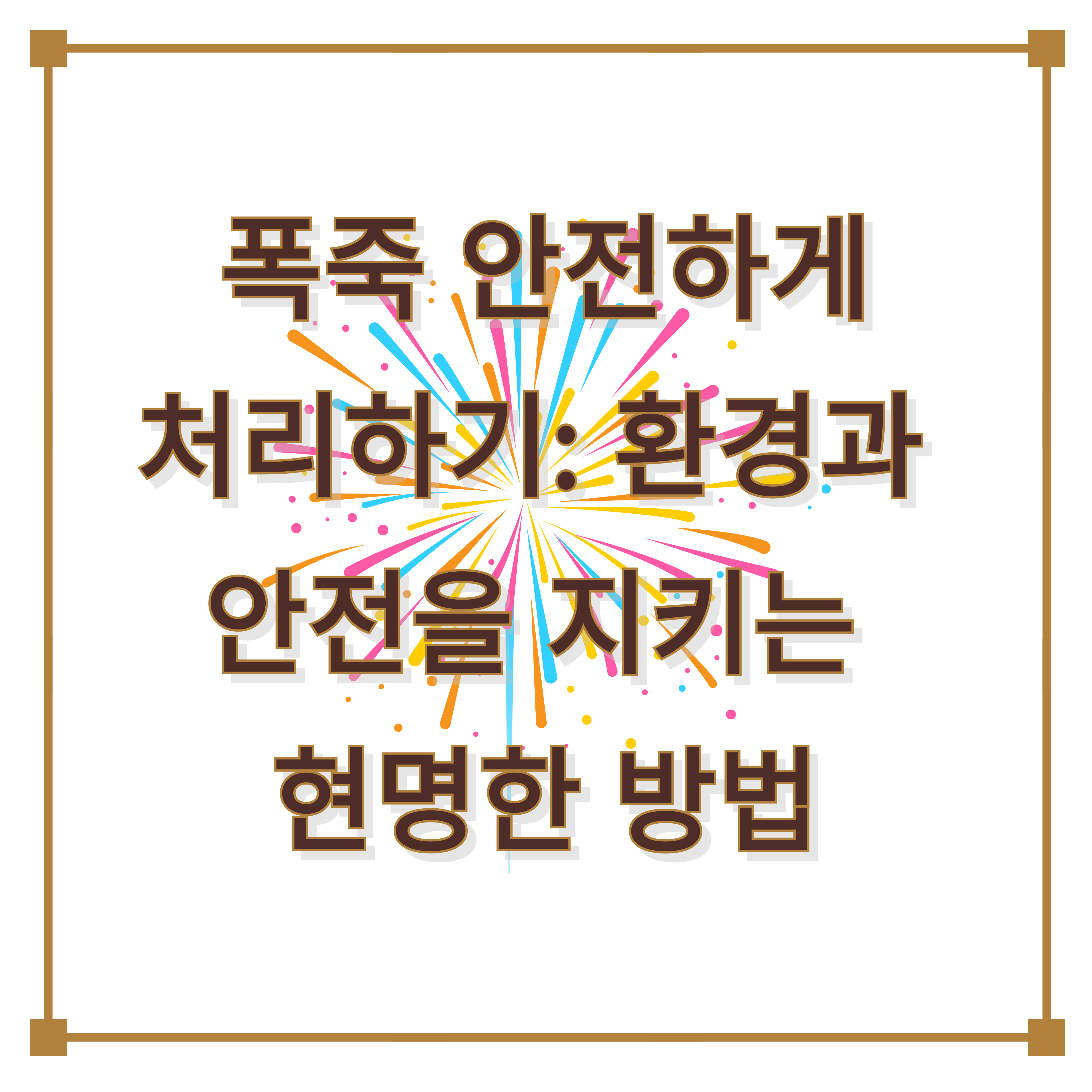 안녕하세요, 여러분! 오늘은 사용하지 않은 폭죽을 안전하고 환경 친화적으로 처리하는 방법에 대해 알아보겠습니다. 폭죽은 즐거운 순간을 더욱 빛나게 해주지만, 남은 폭죽을 그냥 버리면 위험할 수 있어요. 함께 올바른 처리 방법을 알아볼까요?
