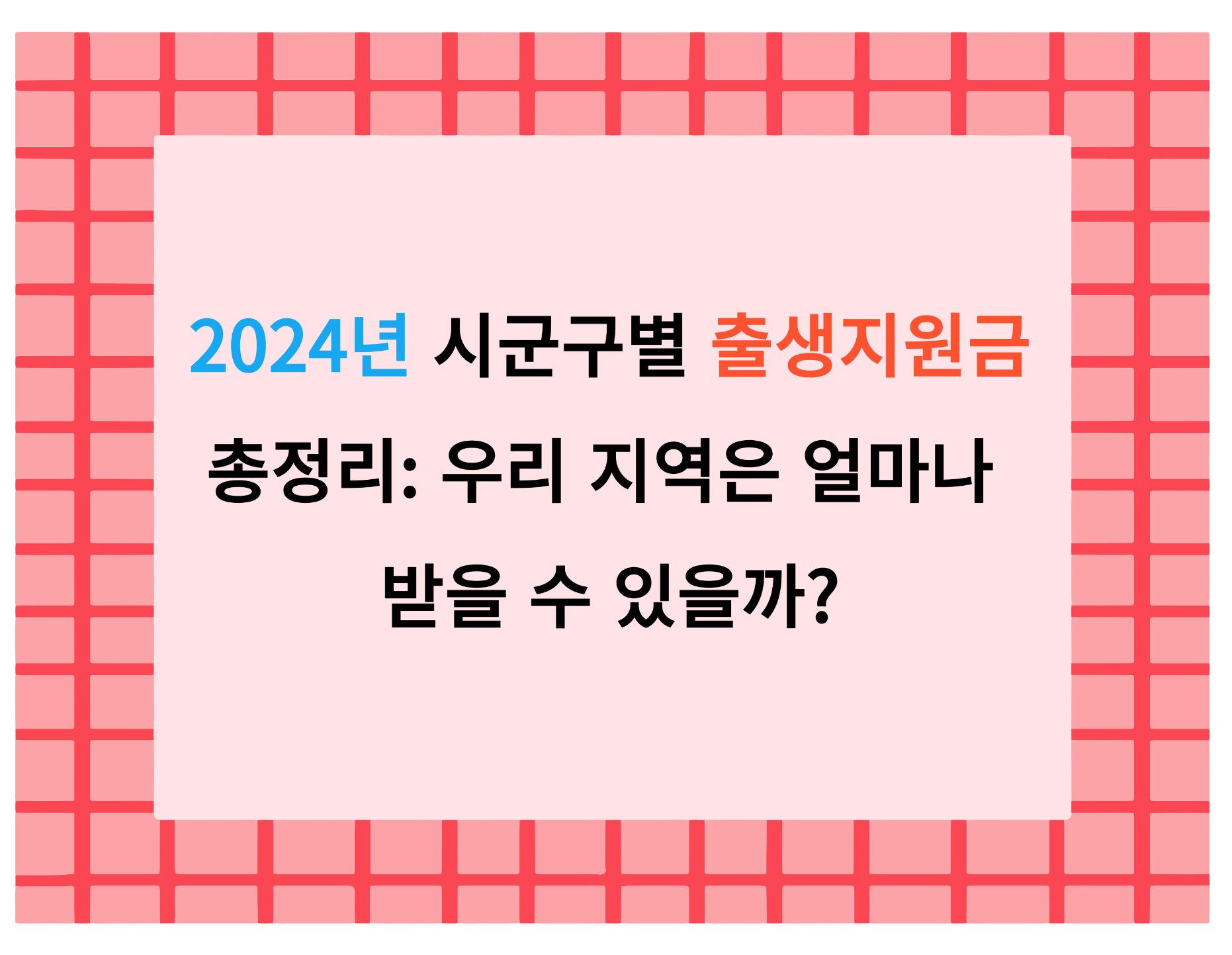 안녕하세요, 예비 부모님들! 2024년을 맞이하여 각 지역에서 시행되고 있는 출생지원금을 알아보겠습니다. 지역별로 지원 금액과 조건이 다르니, 자녀를 계획 중인 분들은 꼭 확인해보세요!