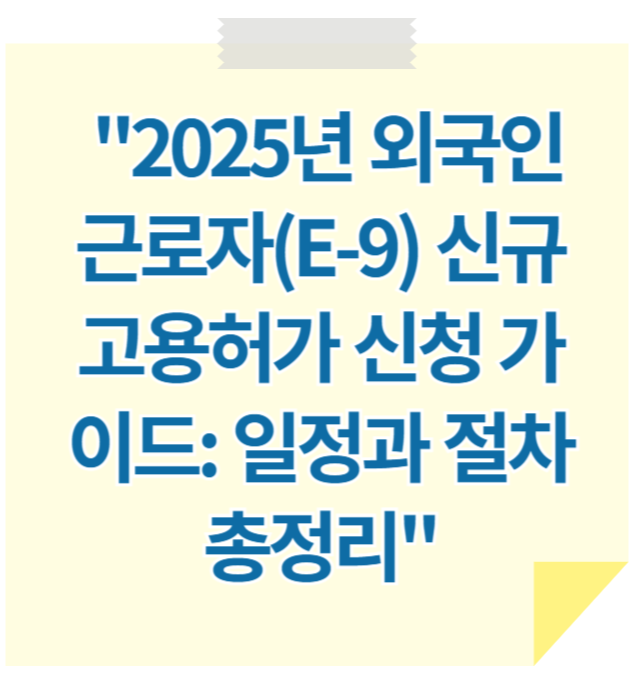 외국인근로자 고용허가제는 국내 인력난을 겪는 기업이 합법적으로 외국인 근로자를 고용할 수 있도록 지원하는 제도입니다. 2025년에는 총 5차례의 신규 고용허가 신청이 진행될 예정이며, 1회차 접수가 곧 시작됩니다. 아래는 외국인근로자(E-9) 신규 고용허가와 관련된 주요 내용을 정리한 가이드입니다.