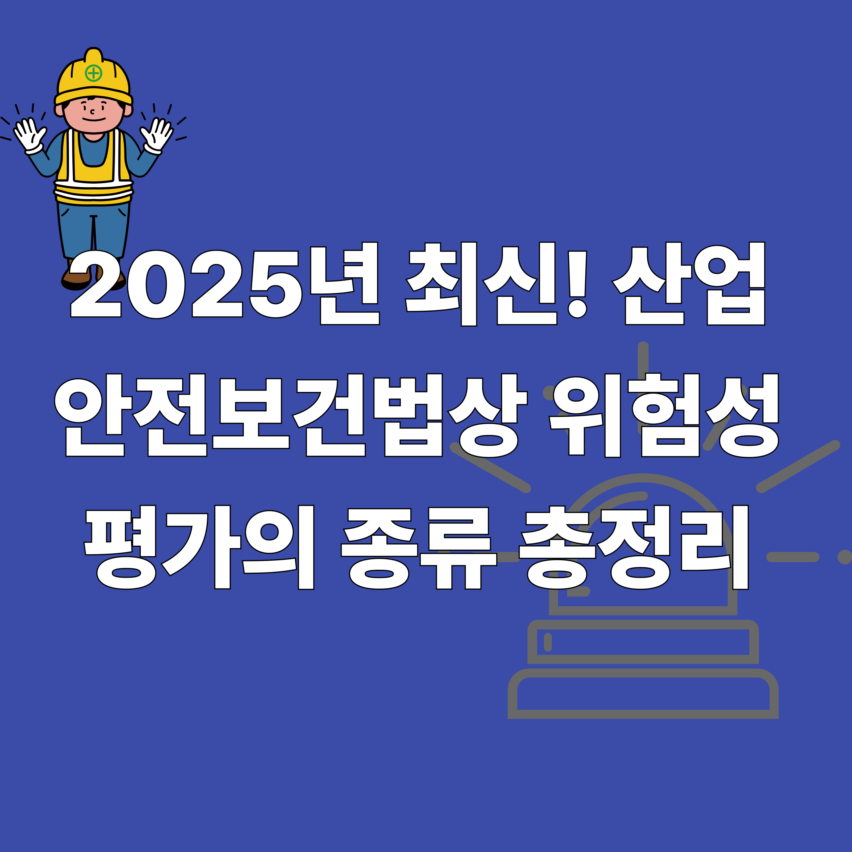 사업장에서 안전보건 관리를 위해 꼭 알아야 할 핵심! 바로 위험성평가(Risk Assessment)입니다. 2025년 기준 산업안전보건법 제36조 및 고용노동부 고시(위험성평가에 관한 지침)에 따라 구체적으로 어떤 종류가 있는지, 어떤 사업장에 어떤 방식으로 적용되는지를 정확하고 알기 쉽게 정리해드립니다.